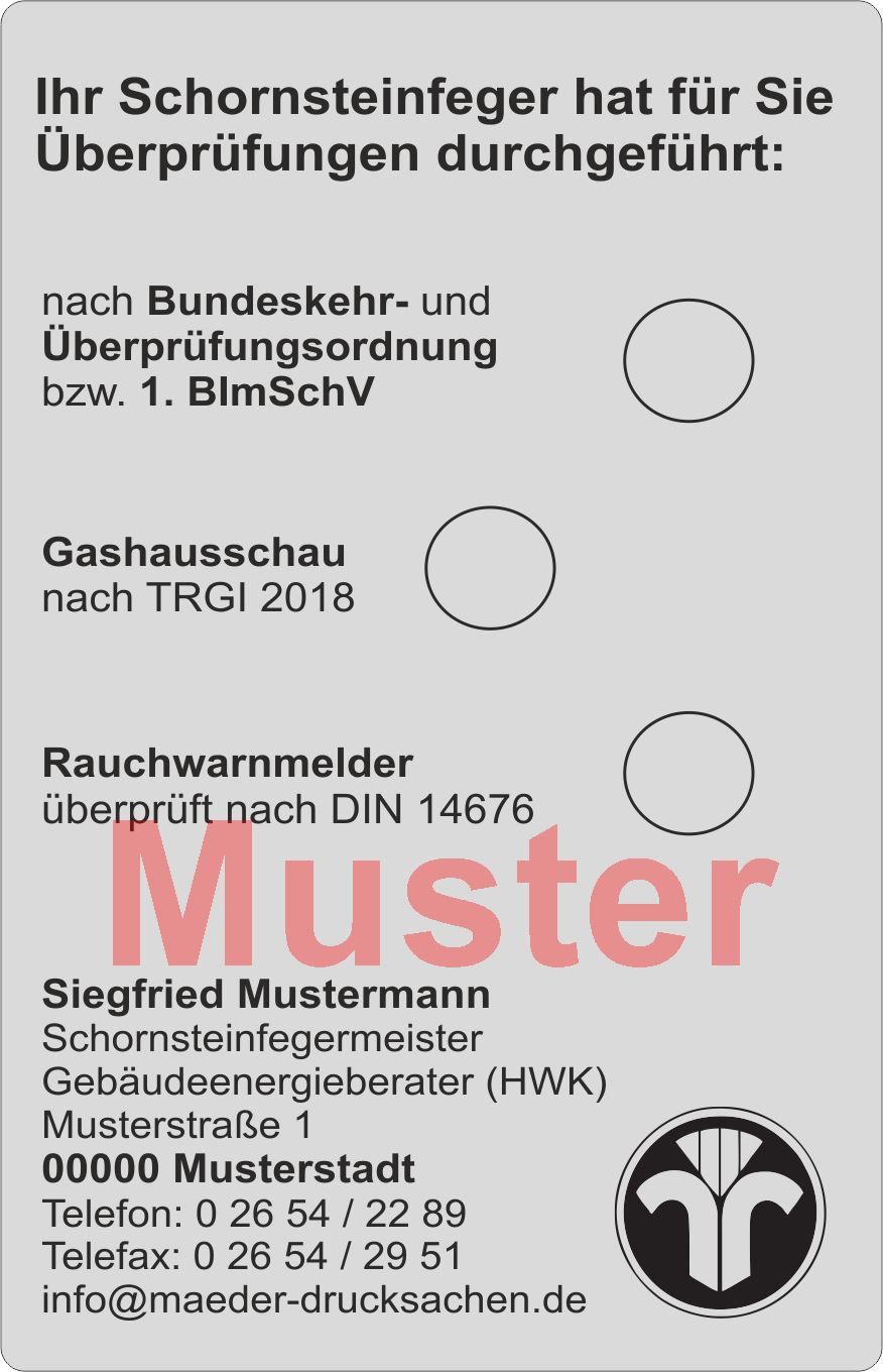 und 3 wahlweise Überprüfungsarten (bitte bei Bestellung angeben),